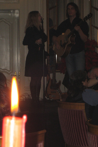 Von ihrer kleinen Bühne aus liefern sie zwei musikalische Einlagen zum weihnachtlichen Festmal welches heute Abend hier genossen wird.