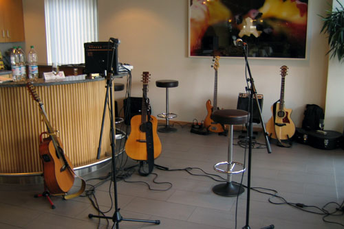 Der Raum ist geschmückt, die Tische gedeckt und die Gitarren gestimmt. Mit ein wenig Verspätung trifft die Gesellschaft ein — es wird ein langer Abend: BCC spielt 3 Sets, dazwischen gibt es köstliche Speisen vom Buffet. Auch die Kommunikation stimmt: BCC musiziert und reisst das Publikum mit. Das Publikum seinerseits dankt es der Band mit herzlichem Applaus und spornt so die Musiker an — auf Berndeutsch: