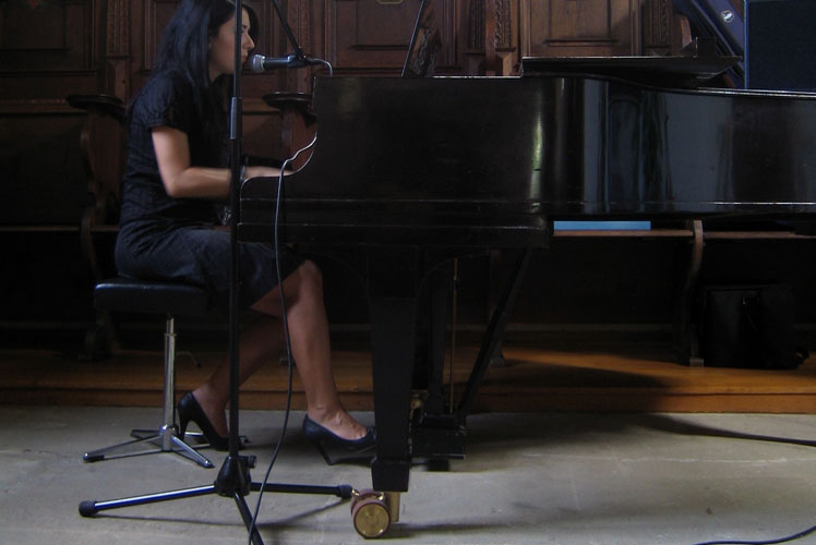 Die Musiker von BCC treffen sich in der schlichten Kapelle mit der wunderbaren Akustik. Es folgt eine Premiere: Beim Einmarsch der Braut bezaubert Mariana solo mit Gesang und Spiel am Flügel. Während der Trauungszeremonie spielt die Band drei weitere Songs. Anschliessend, nach dem exzellenten Apéro, geht's weiter ins Schlossrestaurant.