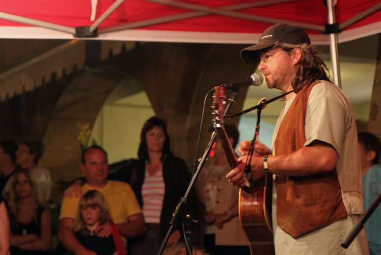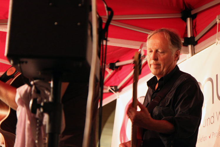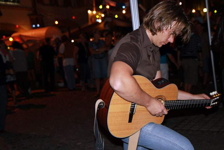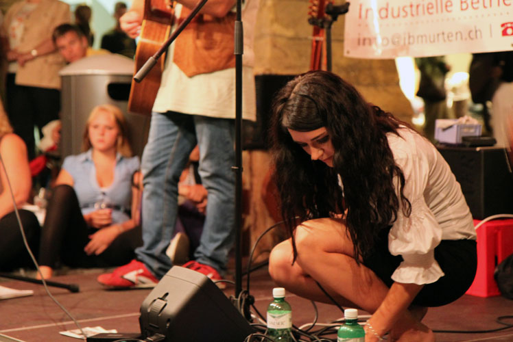 Das Murtener Stadtfest verzeichnet auch dieses Jahr wieder viele Besucher. An den Ständen entlang der Hauptgasse werden Getränke, Essen, Tanz und Musik geboten. Es herrscht ausgelassene Stimmung – die Leute feiern, die Kinder spielen. Mittendrin, bei der Kreuzgasse, steht die Bühne bereit.