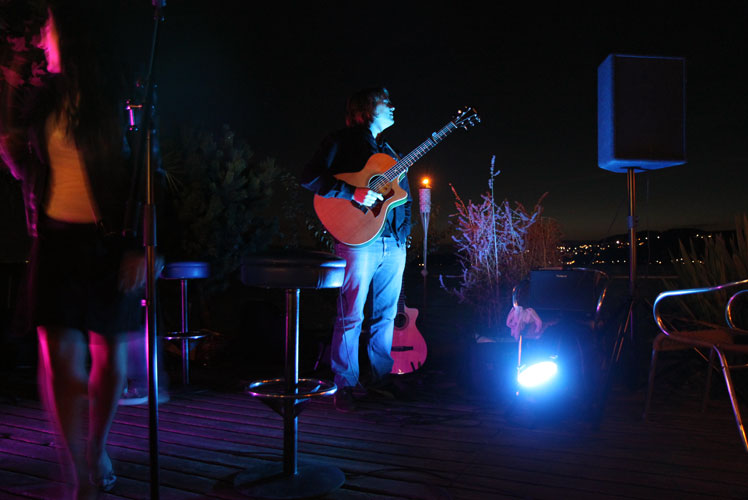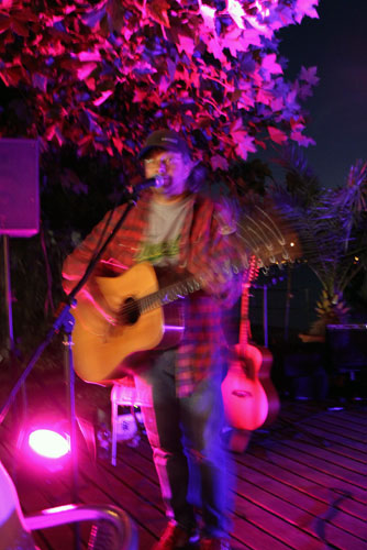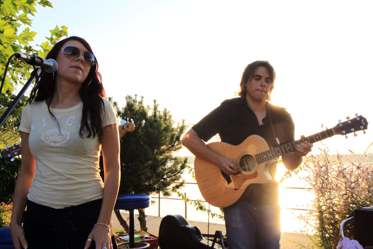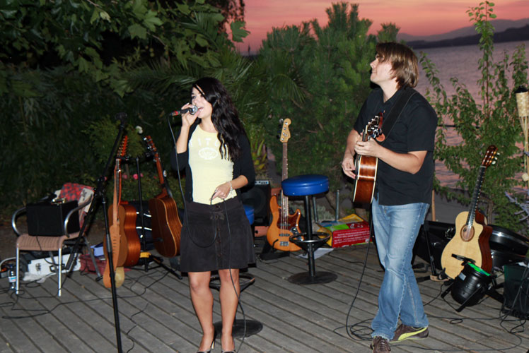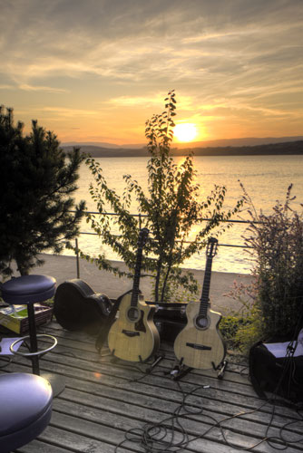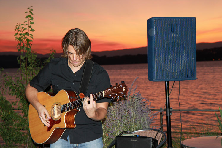 Die Sonne ist untergegangen. Was bleibt ist ein roter Schimmer über dem See. Die Musiker – mittlerweile ohne Sonnenbrille – geniessen die wunderbar friedliche Stimmung und spielen ein eher ruhiges zweites Set.