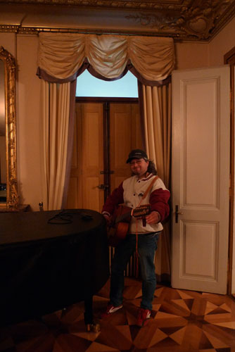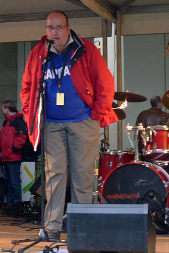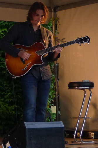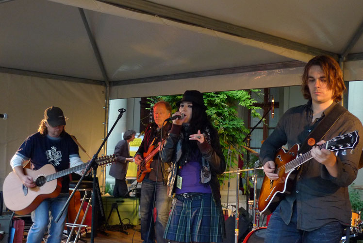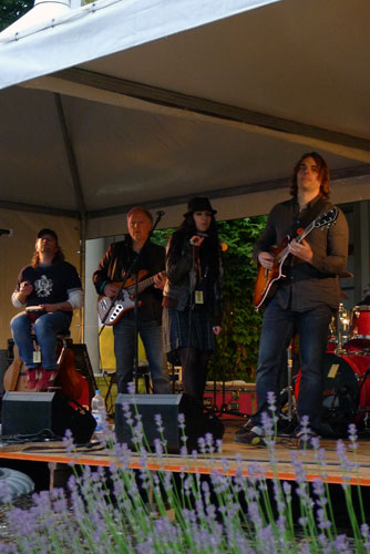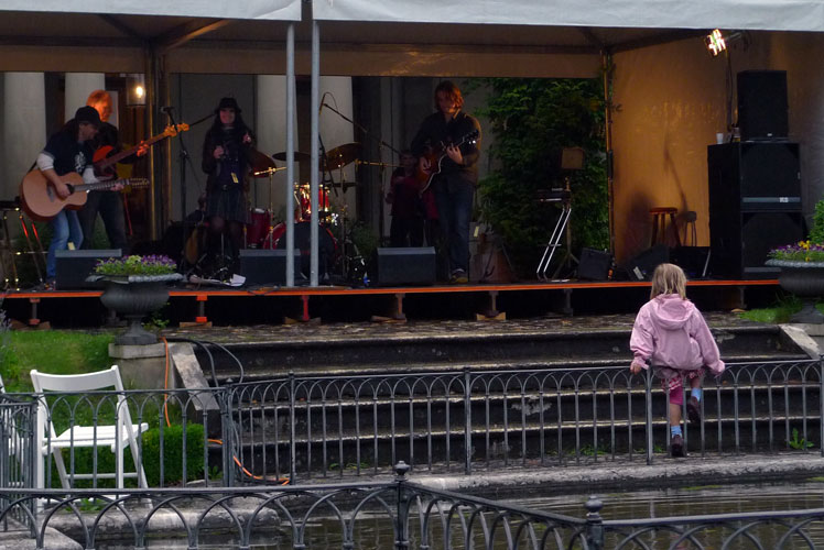 Musik, Geschichten, Reisebericht, Zauberer, Clown, Nudeln, Hot-Dog, Bier, Wein, Sirup, Kaffee, Kuchen, Regen, Regenschirme, nasser Rasen, nasse Zuhörer, gedeckte Bühne, drinnen ist's warm, draussen spielt die Musik: siJamais,