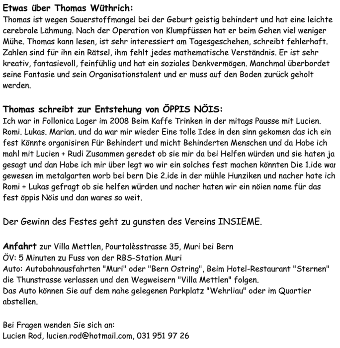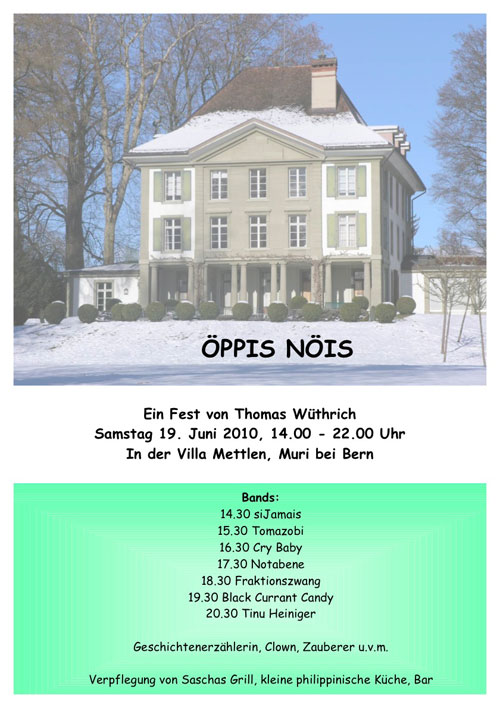 "Öppis Nöis" – das ist der Name des von Thomas Wüthrich veranstalteten Open-Airs in der Villa Mettlen in Muri b. Bern welches diesen Juni zum ersten Mal durchgeführt wurde.