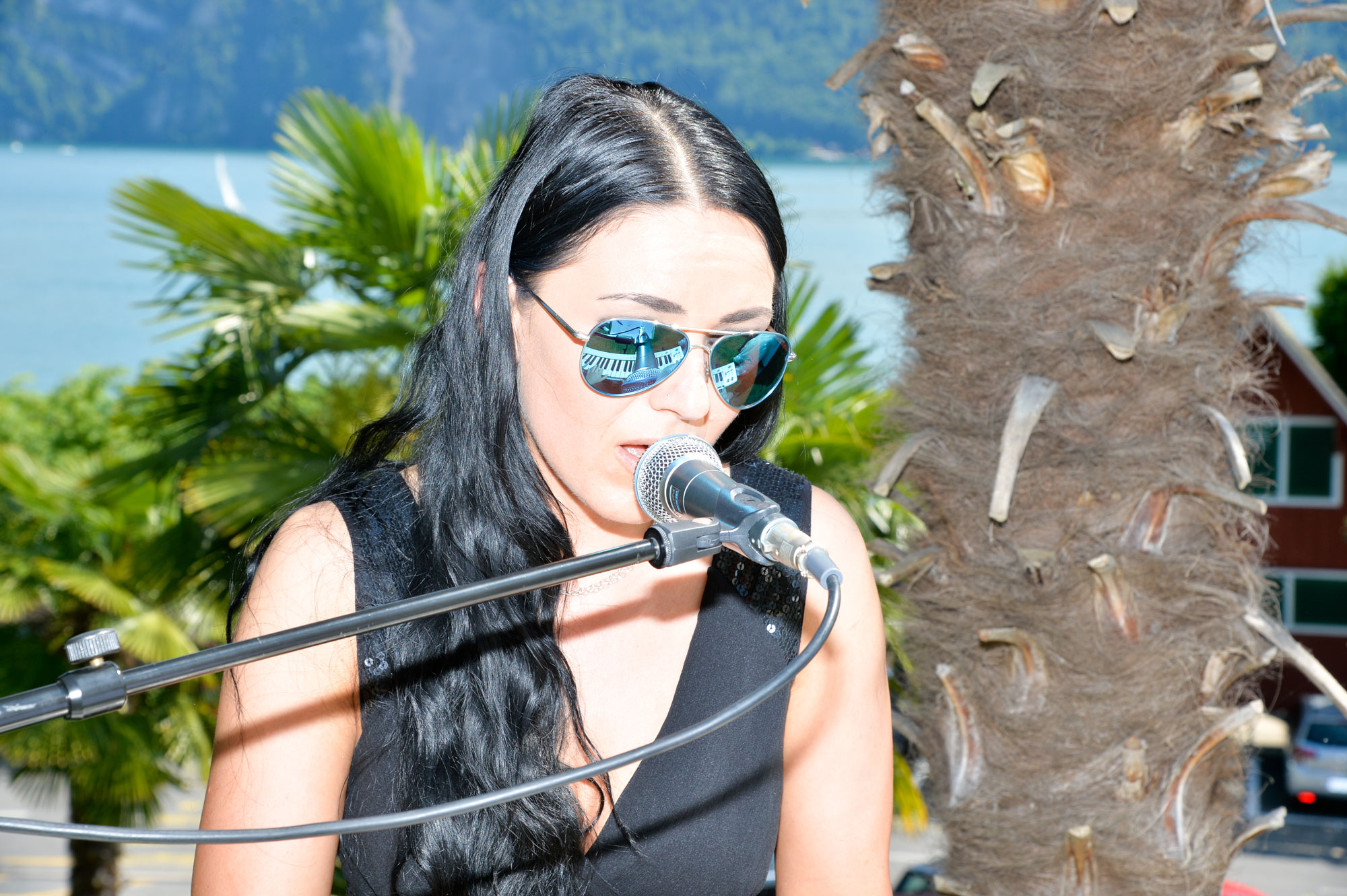 Musik ist das Thema und Musik gehört dazu – So begleitet Mariana den Anlass mit Gesang und Klavierspiel.