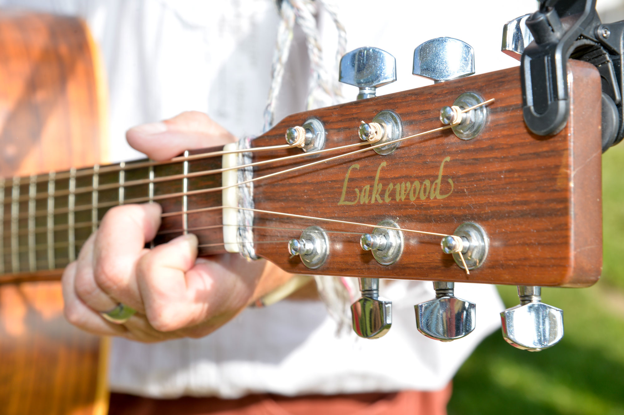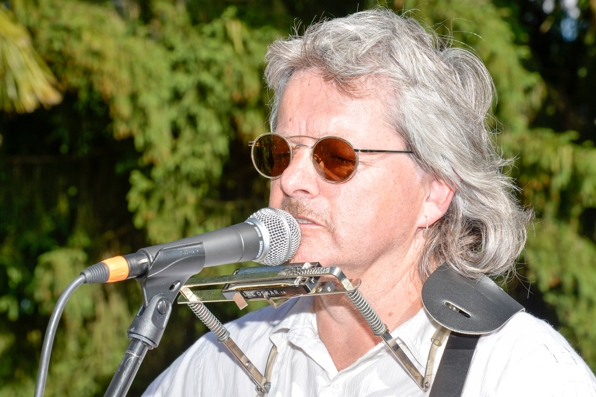 Ein Häppchen hier, ein Schlückchen da und Musik gehört dazu – Der Ex-Candy Andy Trinkler betritt den Rasen und überzeugt mit seinen Covers und Eigenkreationen an Gitarre und Mundharmonika.