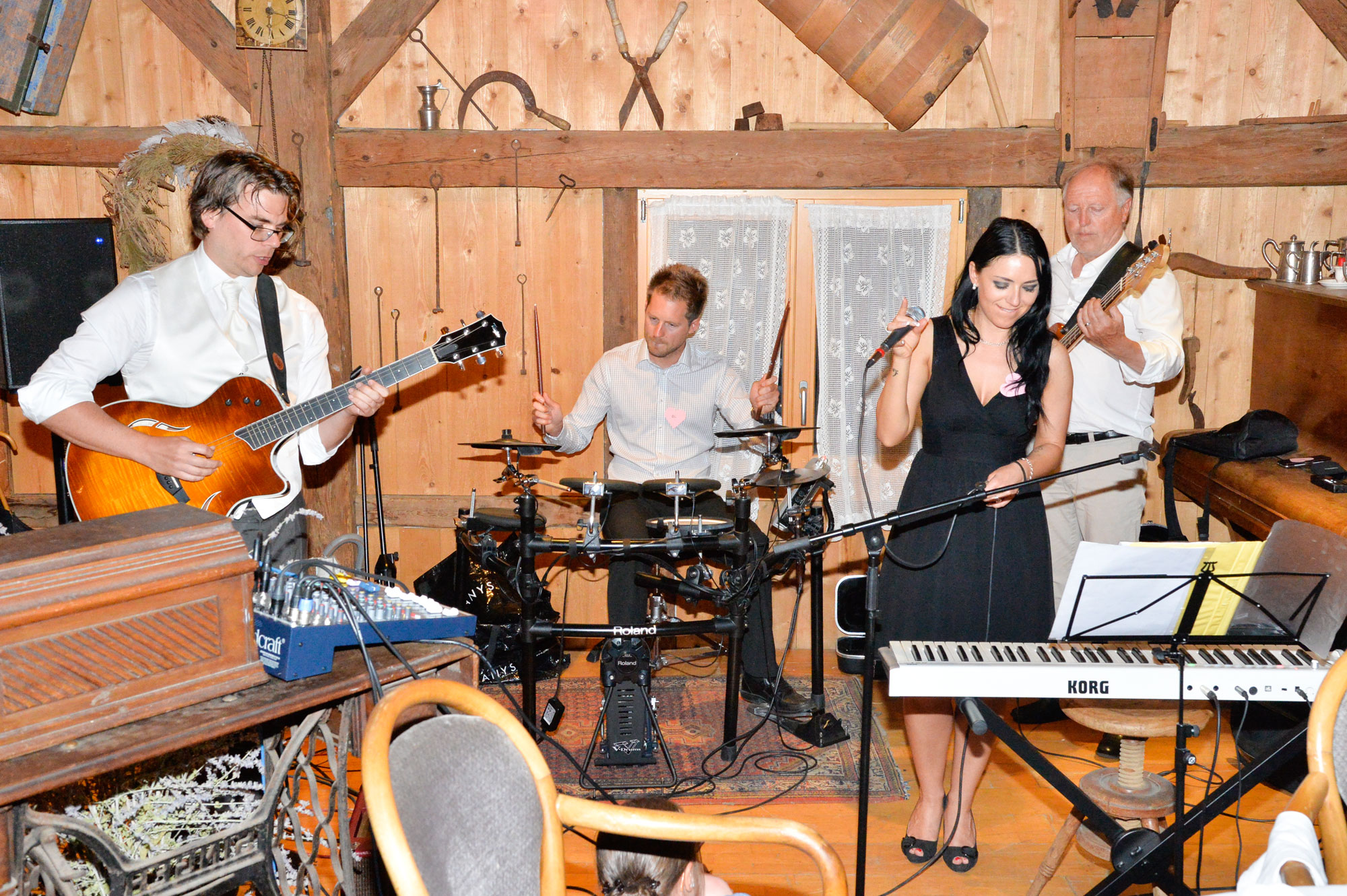 Die Tische sind rund, der Wein ist rot und Musik gehört dazu – Die Band liefert die musikalische Abrundung des Festes und füllt die Lücken zwischen Essen, Ansprachen und Party-Spielen.